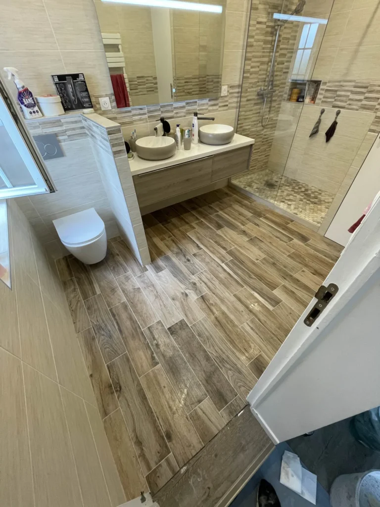- Installation complète : Nous installons la plomberie et posons tous les éléments de votre salle de bain (vasque, douche, baignoire, sèche-serviette …) ou de votre cuisine. Notre équipe pluridisciplinaire vous permet d’avoir un seul interlocuteur pour l’ensemble de votre projet.